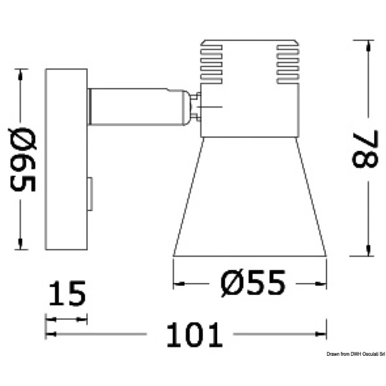 Faretto LED snodato finitura lucida 240 mm