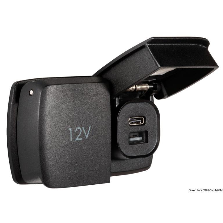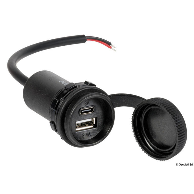 Presa stagna USB-A + USB+C con cappuccio