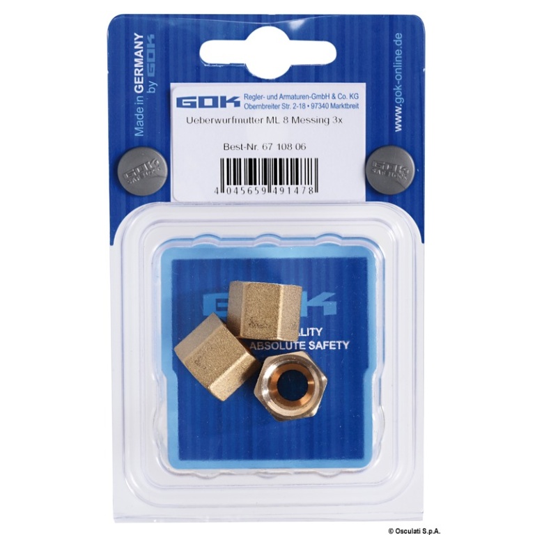Dado in ottone tubo rame da 8 mm (blister 3 pz)