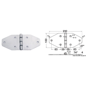 Cerniera inox con fori 137x70