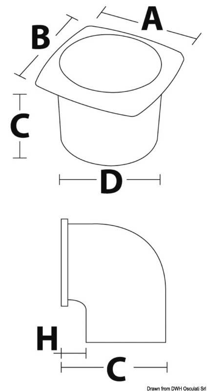 Presa d'aria ABS con collare mm 126 x 126 nera