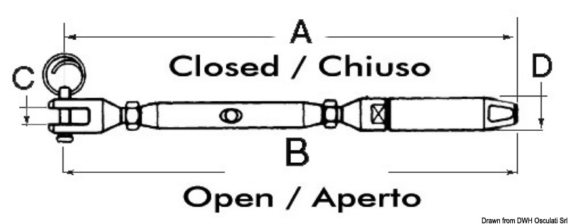 Tenditore sartiame forcella fissa 5/8" cavo 8 mm